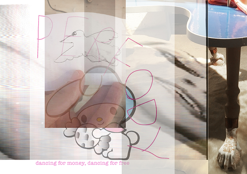 Die Ausstellung "PERFODY dancing for money, dancing for free“ von Charlotte Arnold, Fabio Cirillo und Stefan Mildenberger verhandelt Fragen zu sozialer Identität, Geschichtsschreibung und Massenmedien in Bezug auf Hetero-Normativität und die damit einhergehende Angst vor Andersartigkeiten und Fremdem. Dekonstruktion, Abstraktion und neue mögliche Formen erforschter und überlieferter Inhalte sind zentrales Element der Ausstellung und Verknüpfungspunkte der künstlerischen Praxen der KünstlerInnen. Die Auflösung der Trennung von Natürlichkeit und Künstlichkeit, den sozialen Beschränkungen durch Geschlechterrollen und Identitätspolitiken, diente als Inspiration der ausgestellten Videos, Installationen, Bildern und Performances.