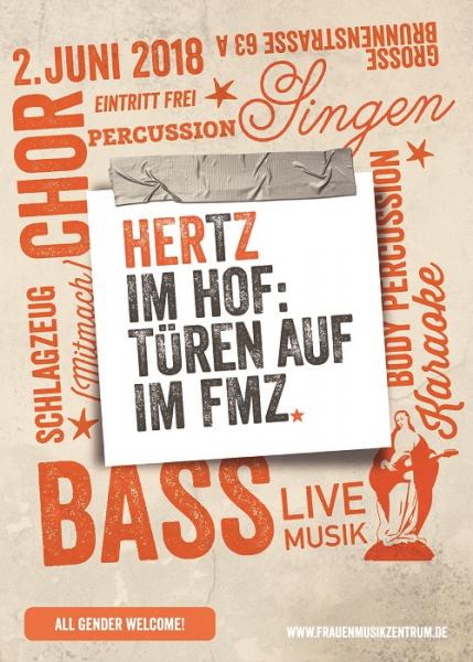 Vergangenes Jahr haben wir zum 30jährigen Jubiläum gezeigt, was die hier probenden Musikerinnen* auf die Bühne bringen. Heute seid ihr am Zug: Wir öffnen die Türen und laden euch ein, einfach mal zu machen: Schlagzeug oder Bass spielen, Rhythmus finden oder Singen – ausprobieren ist ausdrücklich erwünscht! Natürlich darf auch zugehört werden, im Haus und auf dem Hof – wo wir den Abend mit einem kleinen Fest feiern möchten.