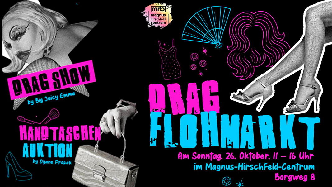 Dann komm´ am Sonntag ins Magnus Hirschfeld Centrum am Borgweg und deck´dich mit fiercen Accesoires ein! Queens, Quings, Tunten und Performer aus Hamburgs queerer Community verkaufen gebrauchte Schätze für den einen guten Zweck. Queer, nachhaltig und Fun. Obendrauf gibt´s eine high Energy Drag Show mit Big Juicy Emma und die Kult gewordene Versteigerung der hässlichsten Handtaschen der Welt mit Mother Dyane Prozak. It´s going to be quite a ride, Darlings!