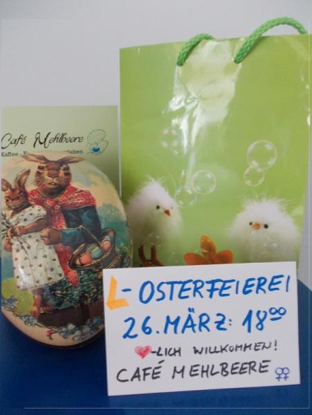 Herzlich willkommen zur L-Osterfeierei mit Schokosandknete zum Modellieren von Osterhäschen, Doppeläxten u.a., kleinem Osterfeuer, Frauen-Mehlbeeren-Osterquiz und der Möglichkeit zu netten Gesprächen in gemütlicher Runde.