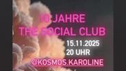 Sa, 15.11.2025, 20.00 | bis So, 16.11.2025, 02.00 |Party The Social Club - 10 Jahre - KOMMT TANZENKosmos Karoline (Ex Pal)