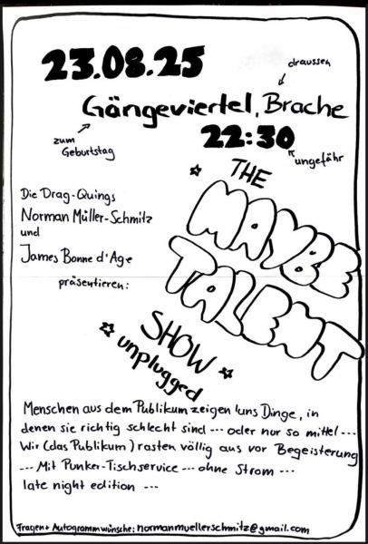 Zur Sommeredition der Maybe Talent Show bespielen wir - Trommelwirbel *@%€@*!- die heiligen Hallen des Gängeviertels!