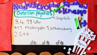 Die Radastrophe FLINTA-Fahrradwerkstatt zeigt den Film 'Ovarian Psychos'(--> Trailer und Filmbeschreibung: https://vimeo.com/ondemand/ovarianpsycos) und bietet danach Raum für Austausch über den Film.