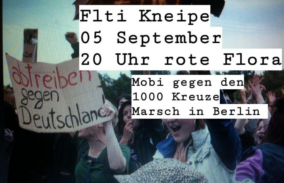Am 21.September ist wieder 1000 Kreuze Marsch in Berlin: ein trostloser, schweigender Haufen christlicher Fundamentalist*innen marschiert durch die bunten Straßen Berlins. Ausgestattet mit Bibeln, riesigen Holzkreuzen und mittelalterlichen Vorstellungen von Sexualmoral und Familienbild verbreiteten Sie einen radikalen Antifeminismus, Homo-und Transfeindlichkeit und allgemeines Spaßverbot. Doch Auch dieses Jahr werden wir Ihnen unseren Protest entgegenschmettern – wir laden ein zur FLTI Mobi Kneipe in die Rote Flora!!