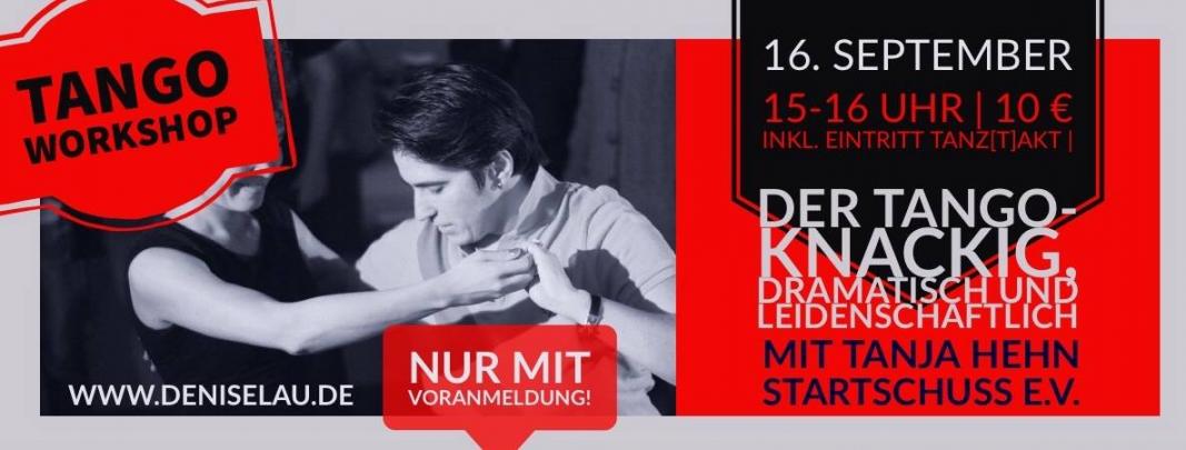 "Tango" - Workshop mit Tanja Hehn vom Startschuß e.V. von 15-16 Uhr vor dem TanzTakt. Der Workshop ist nur mit vorheriger Anmeldung über https://www.tanz-takt.de/tanz-veranstaltungen/crashkurse-tanz-specials/ möglich (Kosten 10€ inkl. freies Tanzen danach) . Auch Einzelanmeldung möglich und erwünscht!