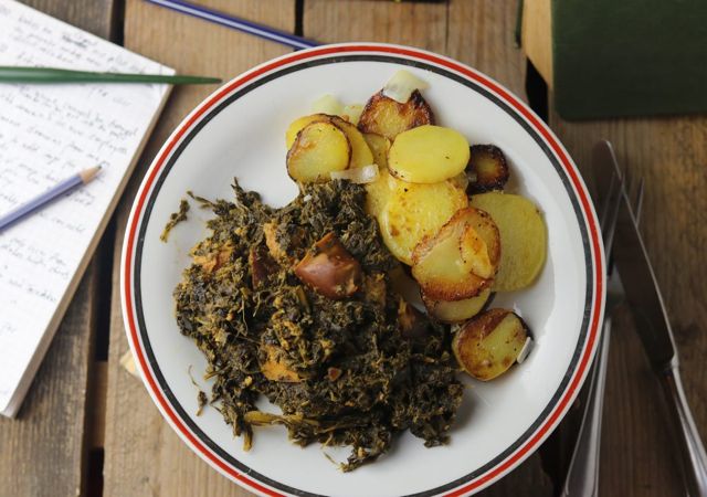 Große Grünkohlsause mit veganem Kassler, Kohlwurst und Schnaps