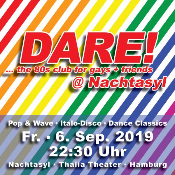 Wie gewohnt - unter dem Dach des Thalia Theaters, im Nachtasyl - wollen wir mit Euch das Beste aus Pop & Wave, Italo Disco, sowie Dance Classics feiern und das zelebrieren was die Gay-Scene der 80er auf die Tanzflächen trieb.