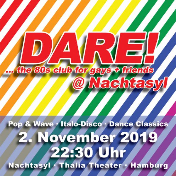DARE! @ Nachtasyl, Thalia Theater, 80er, 80s, 80th, gay, queer, lgbt, Pop, Wave, Italo Disco, Dance Classics, Hamburg, frankie dare, wobo, wolfgang bonow, wham, young guns