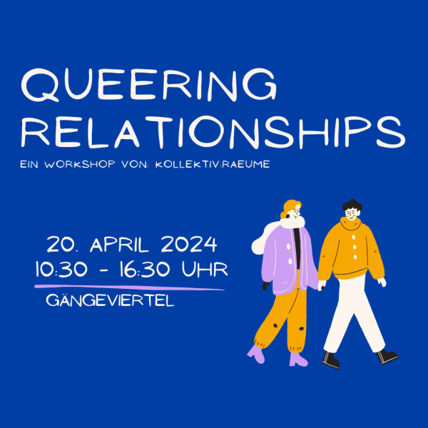 Welche Normen und Regeln prägen unsere Beziehungen? Was erwarten wir uns von den Verbindungen, die wir eingehen und bekommen wir eigentlich das, was wir uns wünschen? Was bedeutet es, eine queere Beziehung zu führen? Diese Fragen und mehr möchten wir gemeinsam mit euch in dem Workshop “Queering Relationships” bearbeiten. Wir möchten uns dabei mit queeren Perspektiven auf verschiedene Beziehungsformen (Freund:innenschaften, romantische / (a)sexuelle Beziehungen, Familie und mehr) beschäftigen. Wir wünschen uns einen Raum, in dem sich alle Menschen, die sich gerade aktiv mit diesen Fragen beschäftigen, miteinander austauschen können. Deswegen ist unser Workshop offen für alle, die heteronormative Vorstellungen über Beziehungen gemeinsam hinterfragen wollen.