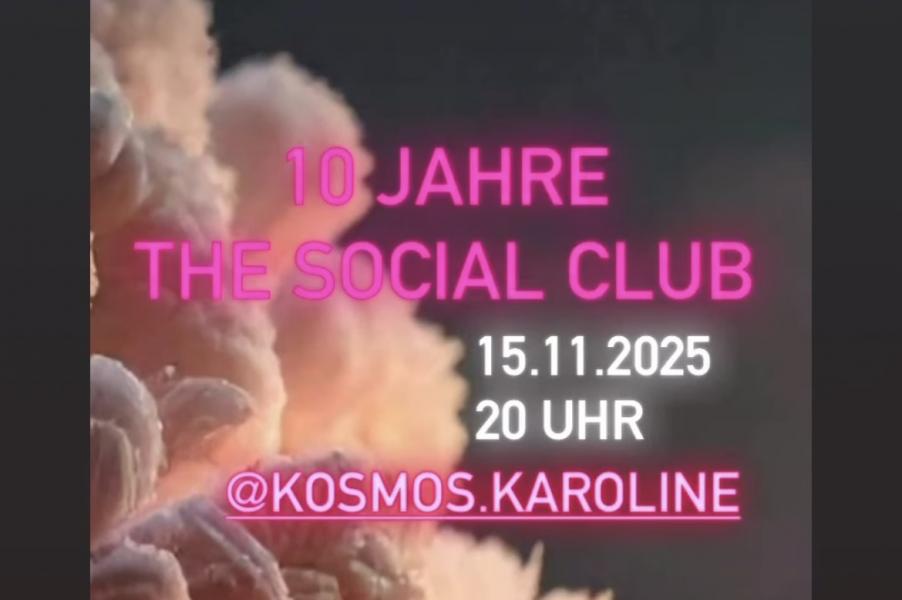 10 Jahre Social Club sind 10 Jahre Hotness and Softness mit Euch unseren wunderbaren Gästen! Das ruft danach gefeiert zu werden! So kommt und tanzt mit uns am 15.11.2025 20 Uhr im Kosmos Karoline.