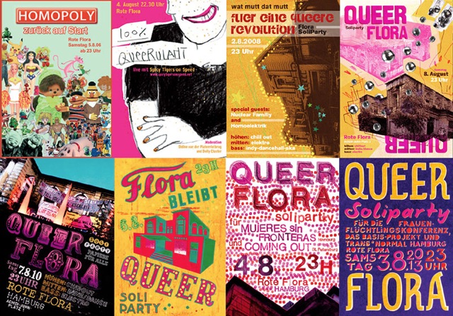 Die Queer Flora findet jedes Jahr als nicht-kommerzielle Alternative zu den offiziellen CSD-Events statt, dieses Jahr am 2.8. Um die Party vorzubereiten, treffen wir uns von April bis August alle drei bis vier Wochen. Im Rahmen der Party hatten wir schon Bands, Performances, eine Modenschau und aufwändige Deko. Nach acht Runden wissen wir also gut, was bei in der Flora möglich und nötig ist, sind aber gespannt auf neue Leute und Ideen.